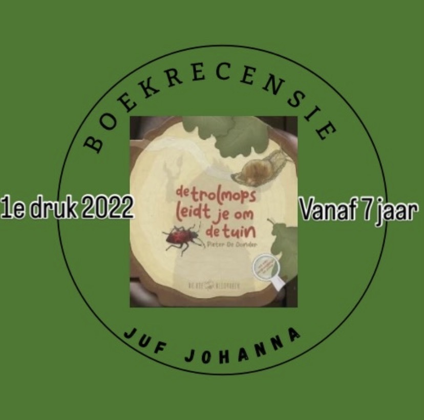 De trolmops leidt je om de tuin is een mooi boekje. De vorm is al erg opvallend, waardoor het de aandacht trekt. Het spoor van de slak is glimmend afgedrukt, alsof het echt kleverig is. Het heeft de uitstraling van een kartonboekje, maar is een leesboek, want het heeft een kartonnen kaft met daarin dunne blaadjes. De informatie die erin staat is goed bruikbaar in je klas. Wanneer je een thema over kriebeldieren hebt, dan is dit een mooi startboekje. Achterin zit een vergrootglas en een sticker van de trolmops. Het vergrootglas kun je in het boek gebruiken, maar natuurlijk ook buiten om zelf de dieren te spotten. Pieter De Donder heeft het boek geschreven. Ik heb het met veel plezier gelezen.