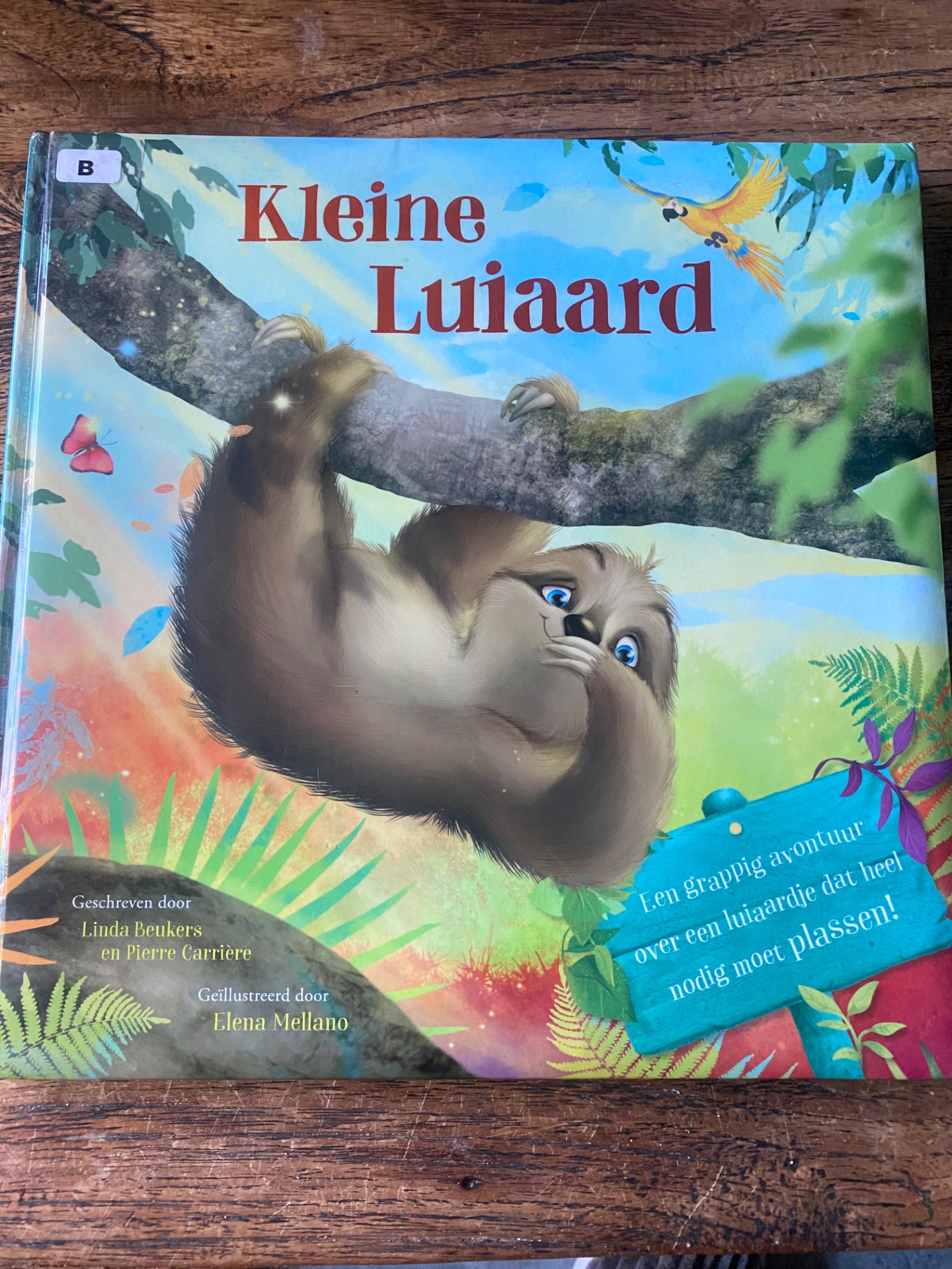 Dit boek leende ik van de bibliotheek, omdat ik een kind in de groep heb die echt idolaat is van luiaarden. Hij klaagt steeds dat er zo weinig boeken over zijn, dus pak ik elk boek dat ik zie uiteraard mee. Dit is wel een erg leuk prentenboek, maar niet meer voor kinderen in groep 4. Het verhasl gaat over een luiaard die op ontdekking gaat, maar dan ineems moet plassen. Luiaarden plassen op de grond, dus moet hij ineens snel naar beneden klimmen.
