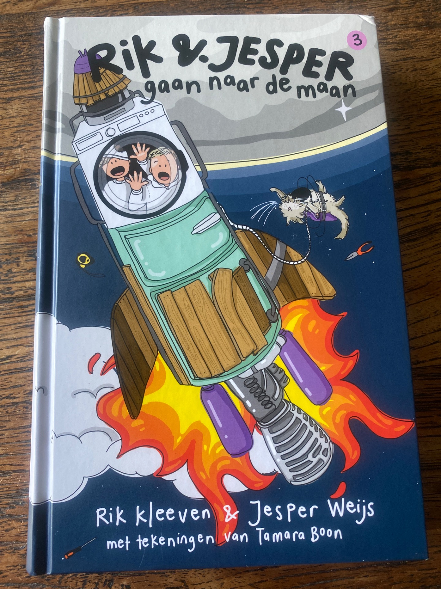 Dit is een van de boeken die binnenkwam. Het is: Rik en Jesper gaan naar de maan en is alweer het derde deel in de serie over Rik en Jesper. Ik heb het even doorgebladerd en zie dat er mooie tekeningetjes op de schutbladen staan. Verder staan er vele illustraties in het boek. Het lettertype is vrij groot, dus het is makkelijk te lezen. De illustraties in het boek zelf zijn zwart/wit. Ik laat jullie later weten wat ik van dit boek vind.