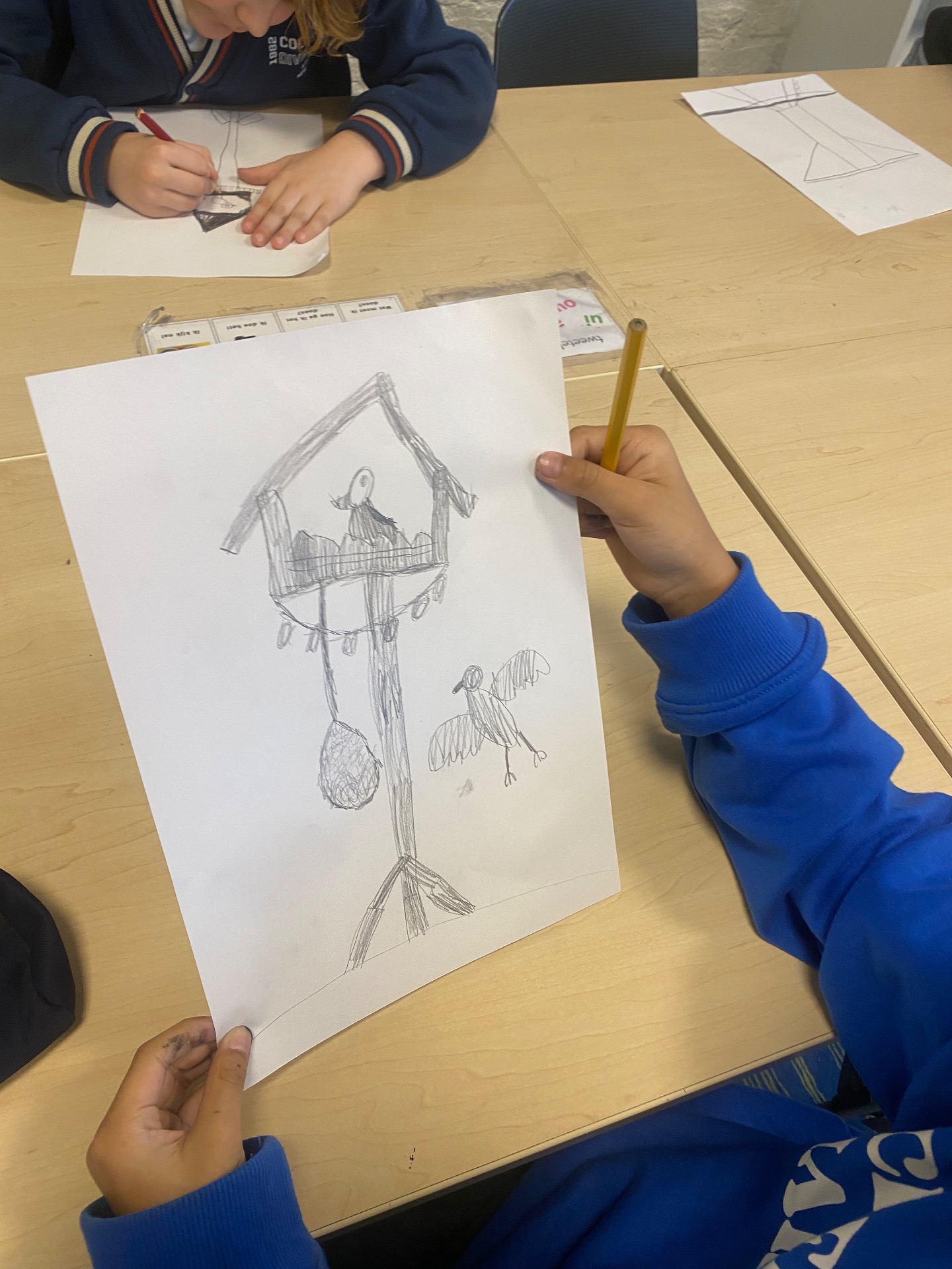 Het nieiwe thema is vogels in de winter. En wat zijn de kids weer enthousiast! Ook deze periode komt er weer een beeldend docent lesgeven. En dat is echt heerlijk! Dit keer gasn we werken vanuit het gedachtengoed van Leonardo Da Vinci. Na een korte kennismaking met deze grootheid leerden we dat hij geaag wilde vliegen en vele vogels tekende. Dat gaan wij nu ook doen. We tekenen een vogelhuisje en oefenen alvast wat met Oostindische inkt en een kroontjespen. Het echte werk begint volgende week. Ik ben zo benieuwd wat de resultaten zullen worden.
