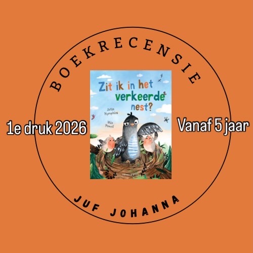 Zit ik in het verkeerde nest is een heel mooi prentenboek. Het gaat over een koekoeksjong, die, zoals het al eeuwen gaat, als ei in een ander nest is gelegd. Dit is natuurlijk al een mooi thema, over vogels en de verschillende gewoontes. Maar je kan het boek ook gebruiken als je het over families en adoptie hebt. De tekst is gemaakt door Jutta Nymphius. De illustraties, die echt prachtige kleuren hebben, net zoals op de kaft. En op de kaft op sommige plekken zelfs glimmen, zijn gemaakt door Mia Powell. De vertaling nam Ellen Hosmar voor haar rekening. Ik vind het echt een topboek, omdat je er verschillende kanten mee op kan.