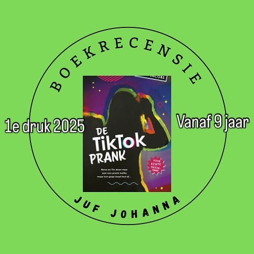 De TikTok prank is alweer het vijfde boek in de serie over TikTok en alle voor- en nadelen van het medium. Annet Jacobs schrijft deze leuke boeken, die je ook prima als alleenstaand boek kunt lezen. Ik vind zelf dit onderwerp erg goed, ouders maken zich natuurlijk niet helemaal onterecht wel eens zorgen over het gebruik van socials. De invloed van likes kan uiteraard zeer verslavend zijn. Nanja Toebak zorgt voor de fantastische kleur in de boeken en de mooie voorkant. Inmiddels heb ik alle boeken gelezen en ben het nog lang niet zat, dus ik hoop dat er nog meer zullen volgen.