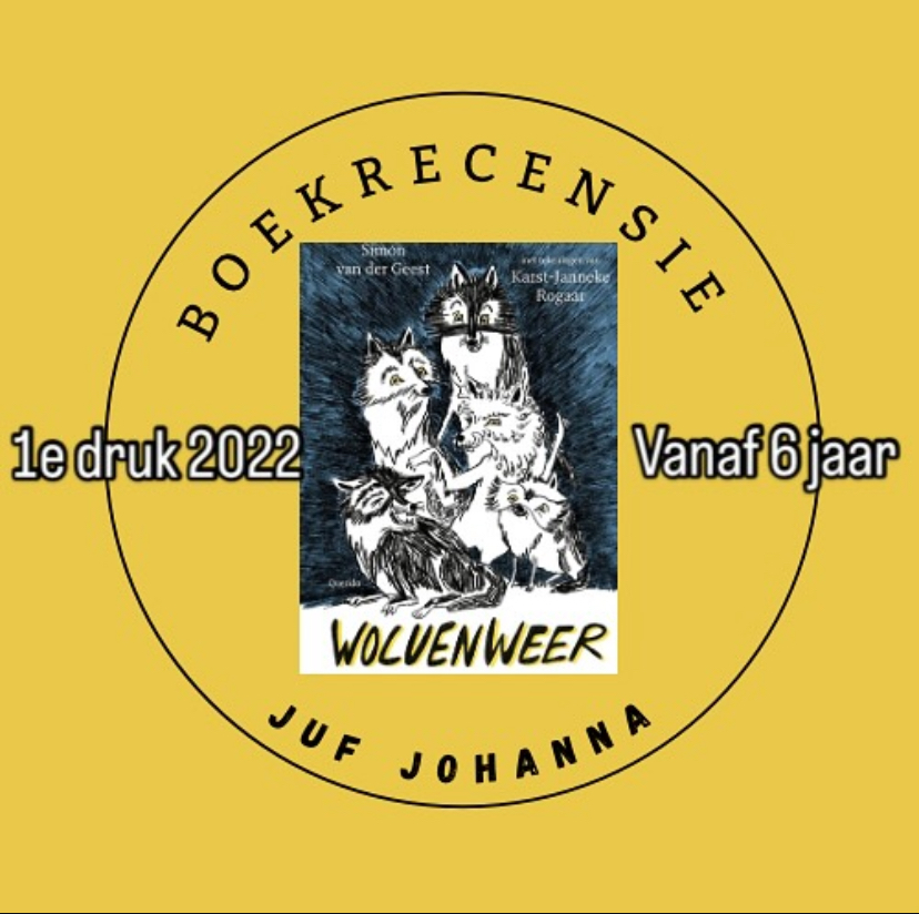 Wolvenweer is een boekje uit de serie tijgerlezen. Iedereen die mij al even volgt weet dat ik echt dol ben op deze serie boeken. Zeker als juf in groep 4. Het zijn boekjes zonder avi-niveau. De tekst is eenvoudig en in korte zinnen geschreven. De verhalen zijn spannend of juist heel grappig of heel vies. Dit spreekt kinderen erg aan. De illustraties zijn vaak heel kleurrijk en op elke bladzijde te vinden. Dit draagt zeker bij aan het leesplezier van de kinderen. Wolvenweer is geschreven door Simon van der Geest, en hij is echt een fantastische schrijver! Misschien ken je hem al van boeken als Spinder of de boeken van de voetbalzombies. Dit prachtige boekje is geïllustreerd door Karst-Janneke Rogaar. Ze heeft in zwar/wit met als steunkleur blauw dit boek echt een eigen karakter gegeven. Want in dit boek is het echt Wolvenweer!