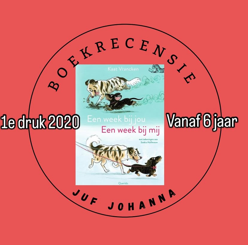 Een week bij jou een week bij mij is een leuk boek over twee honden, wat denk ook uit hun perspectief is geschreven. Dat maakt het een grappig boek. De tekeningen van Saskia Halfmouw zijn echte kinderboekprenten, pastelkleurige rustige combinatie tussen strip en waarheidsgetrouw getekend. Tijdloos zou je kunnen zeggen.
