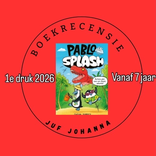 Reis mee door de tijd met Pablo en Splash is een nieuw deel in de serie Tijgerlezen. Deze serie is niet op avi-niveau, maar gaat er vanuit dat kinderen graag spannende en grappige verhalen lezen. De wat moeilijkere woorden halen ze zelf wel uit de tekst of de plaatjes. Zo leren ze beter begrijpend lezen. En dat vinden we natuurlijk allemaal fijn. Dit boek is een mooie strip. Heerlijk om de vrolijke plaatjes te zien en gelijk te begrijpen waar het over gaat. Als je het hebt over leesplezier, dan zal dit boek daar zeker toe bijdragen. Sheena Dempsey heeft het geschreven en geïllustreerd. Matthijs Meeuwsen heeft het vertaald. Je zal Matthijs al kennen van boeken als: een slijmkus van je oma, of Wij zijn de nacht. Voor de serie Tijgerlezen schreef hij het boekje Een Luiaard is niet lui. Ik ben groot fan van zijn werk. Naast het grappige en spannende verhaal, staan er achterin het boek ook nog wat verrassingen. Zo leer je Pablo en Splash tekenen, maar er staat ook informatie over het tijdperk waarin het verhaal zich afspeelt. Hoe tof is dat?! Zo leren de kinderen ook nog eens iets extra's. Dit boek gaat dan ook gelijk mee naar school.