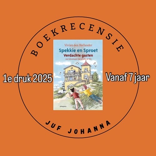 Verdachte gasten is het nieuwste deel uit de serie over het speurende tweetal Spekkie en Sproet. En het is wederom een spannend verhaal. Er zijn vele verdachten en personen die dingen doen die verdacht zijn. Op het laatst word je er ik nog eens op het verkeerde been gezet. Vivian den Hollander schrijft deze fantastische serie. Mijn eigen kinderen zijn er al groot mee geworden en nu nog steeds zijn er veel kinderen die deze boeken graag lezen. En dat is niet zo gek, want het is spannend en heel leuk voor jongens EN meisjes. De tekeningen van Juliette de Wit zijn echt prachtig. Op de kaft zie je al dat ze erg goed is in de expressie in gezichten. Verder zijn haar tekeningen erg duidelijk en laten ze echt goed zien waar het verhaal over gaat. Ze zijn dus echt ondersteunend voor kinderen die niet zo erg goed kunnen begrijpend lezen. Ik ben eigenlijk al jaren fan van deze serie en was dan ook erg blij met dit recensie exemplaar. Hij staat binnenkort in de kast op school.