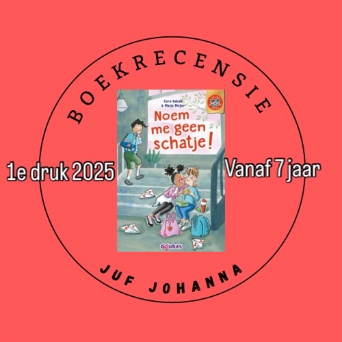 Noem me geen schatje is een ontzettend leuk boekje om samen te lezen. Het is geschreven op E4 en M5 niveau. Zo kunnen kinderen die niet op hetzelfde niveau lezen, toch samen lezen. Hoe mooi is dat! Ik ga dit zeker ook in de klas gebruiken. En dan is het ook nog een enorm leuk onderwerp voor deze leeftijd, want hoe mooi en hoe lastig kan een eerste liefde of verkering zijn?! Het boek is geschreven door Cora Sakalli. De illustraties zijn van Marja Meijer en zijn in het gehele boek ook mooi in kleur. Dat doet zoveel met het leesplezier merk ik. Ik zie regelmatig kinderen boeken uitkiezen en sommige kinderen kiezen dan uiteindelijk toch vaak voor een vrolijk gekleurd boek met gekleurde illustraties in het boek. Op de kaft van dit boek zie je al waar het verhaal over gaat. Een meisje dat vol overgave en liefde kijkt naar een jongen. De jongen zit er wat ongemakkelijk bij. Een andere jongen kijkt een beetje boos naar het tweetal. Tja, wat moet ik hier nog meer over zeggen dan: lees en gebruik het boekje!